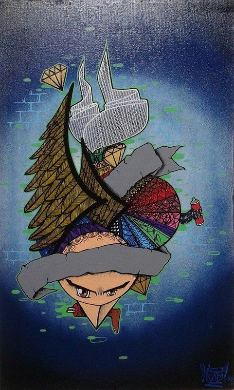 spray e caneta posca sobre tela.